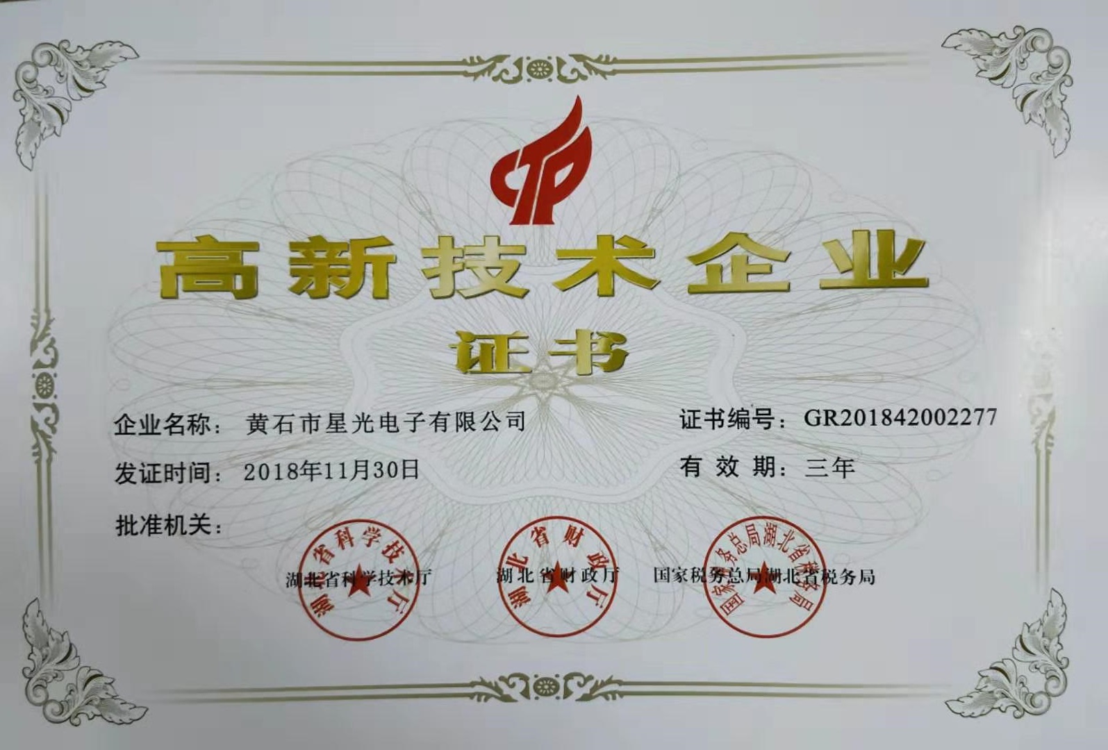 公司于2018年11月取得國家高新科技企業(yè)的資質(zhì)并通過2018湖北省規(guī)模以上企業(yè)的認(rèn)定。
